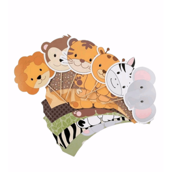 Bring the jungle to your dessert table with this adorable Baby Safari Animal Cupcake Toppers and Wrappers Set! Featuring sweet animal faces like lions, monkeys, tigers, zebras, giraffes, and elephants, these toppers and wrappers are the perfect addition to baby showers, first birthdays, or safari-themed celebrations. Easy to assemble and irresistibly cute!