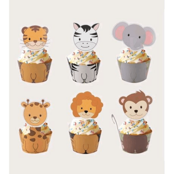 Baby Safari Animal Cupcake Toppers And Wrappers Set - Set of 12Baby Safari Animal Cupcake Toppers And Wrappers Set – Set of 12