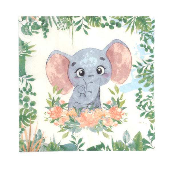 Add a touch of adorable charm to your party table with our Baby Wild Animals Safari Napkins. Featuring a sweet baby elephant surrounded by lush greenery and soft florals, these napkins are perfect for jungle, safari, or animal-themed celebrations. They’re both practical and decorative, making them ideal for wiping little hands or adding to place settings.