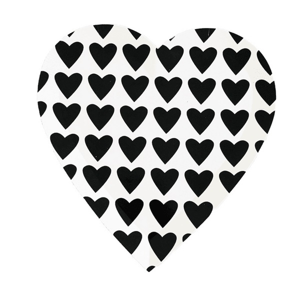 Serve your guests in style with our Black Heart Paper Plates. Designed with a chic black heart pattern on a white background, these large plates are perfect for mains, buffets, and sharing platters. They combine practicality with a stylish design to complement any occasion.