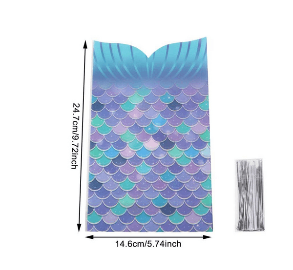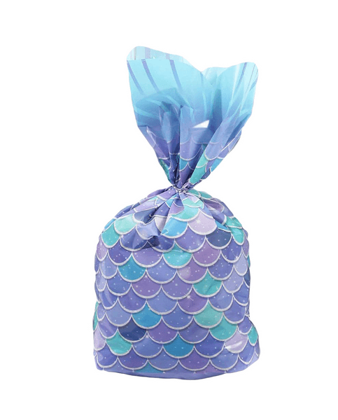 Make a splash at your next celebration with our Blue Mermaid Tail Candy Bags with Twist Tie. Featuring a shimmering mermaid scale design in dreamy ocean hues, these bags are perfect for holding sweets, popcorn, or small party favors. Each bag includes a twist tie, making them both fun and functional for any under-the-sea or mermaid-themed party.