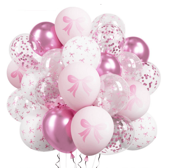 Add a graceful pop of colour to your party with this Bow Themed Latex Balloon Set. With soft pink tones, pretty bow patterns, and confetti-filled balloons, this set is perfect for birthdays, baby showers, or elegant celebrations. The pack includes 6 of each design and comes complete with matching balloon string for easy setup.