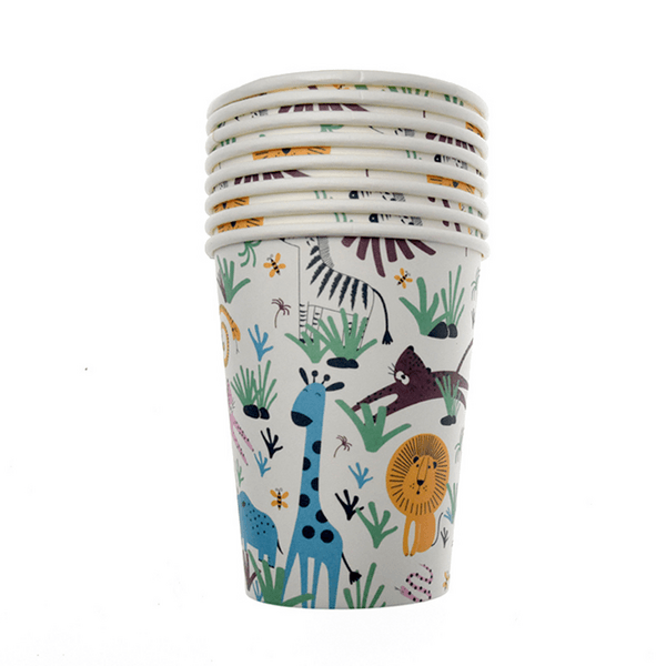Bring vibrant fun to your party with our Bright Wild Animals Paper Cups (8 Cups). Featuring colorful safari animals like lions, giraffes, zebras, and monkeys, these cups are perfect for jungle-themed birthdays, animal adventures, or safari celebrations. Made from durable paper, they hold cold drinks like juice or soda and are disposable for easy cleanup. The lively design pairs well with matching plates and napkins to complete your wild party look.