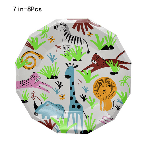Liven up your jungle-themed party with our Bright Wild Animals Paper Plates Large (8 Plates). Featuring colorful illustrations of lions, giraffes, zebras, and more, these plates bring a playful, energetic vibe to any celebration. Perfect for birthdays, animal-themed events, or safari adventures, these large paper plates are great for serving meals, party snacks, or cake. Made from sturdy paper, they handle generous portions while making cleanup a breeze. The bold, cheerful animal design adds fun to your party table and pairs perfectly with matching cups or napkins.
