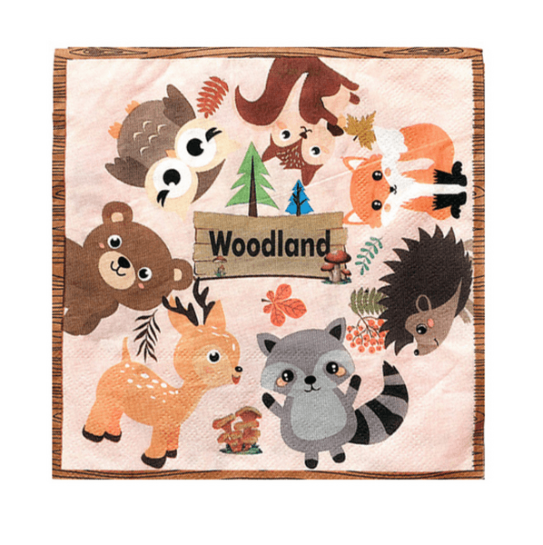 Add a touch of forest charm to your party table with our Brown Woodland Napkins (10 Napkins)! Featuring an adorable circle of woodland animals—including a bear, deer, raccoon, fox, and more—around a “Woodland” sign, these napkins are perfect for nature-inspired birthdays, baby showers, or camping-themed events. Soft, absorbent, and beautifully illustrated, they’re both decorative and practical.
