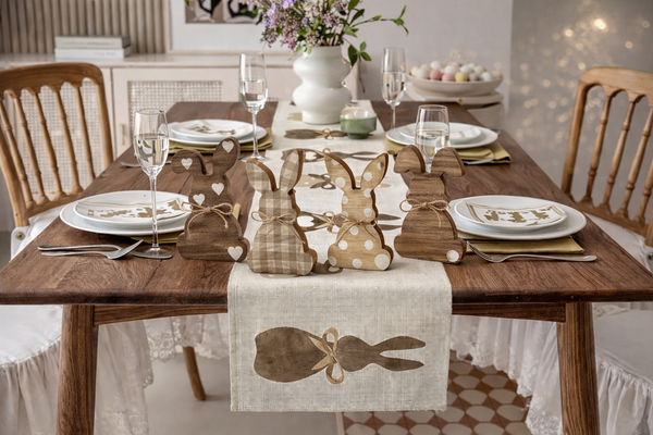 Add a rustic touch to your Easter setup with this charming Bunny Table Décor Set. Each bunny features a unique design with neutral tones, hearts, polka dots, or gingham patterns—perfect for creating a cozy, farmhouse-style Easter display.