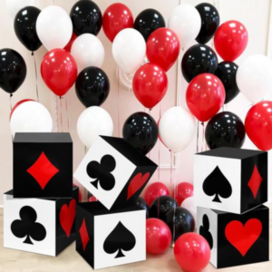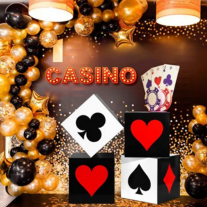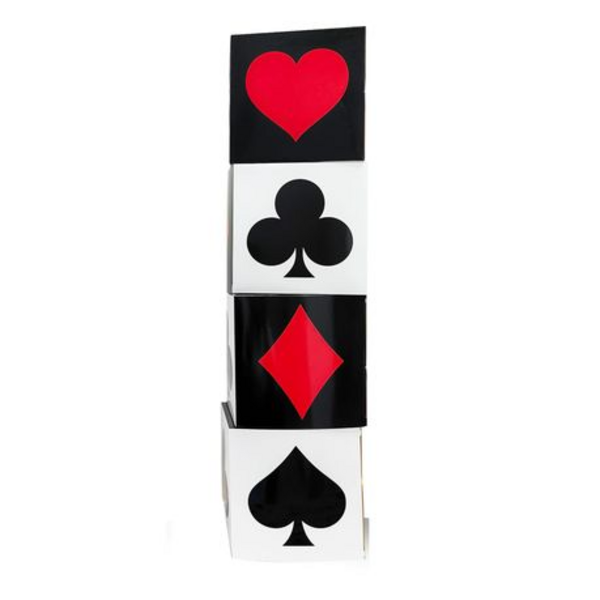 Add bold casino-style decoration to your party setup with these Casino Themed Decor Boxes. Featuring the classic playing card suits – hearts, clubs, diamonds, and spades – these large decorative boxes are perfect for creating eye-catching displays at casino nights, Las Vegas themed parties, birthdays, and special events.