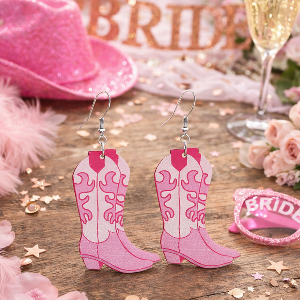 Add a fun western touch to your outfit with these Cowgirl Earrings. Designed in the shape of classic cowboy boots with pink detailing, these playful earrings are perfect for rodeo-themed parties, bachelorette celebrations, and cowgirl-inspired outfits.