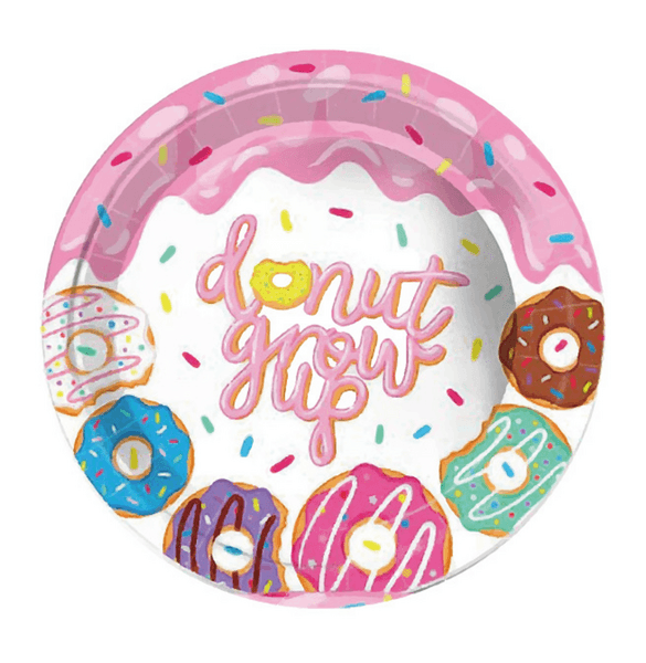Make your celebration extra sweet with our Donut Grow Up Large Paper Plates. Featuring vibrant donut designs with colourful sprinkles and playful “Donut Grow Up” lettering, these plates are perfect for birthdays, dessert tables, and donut-themed parties. The bright pink frosting border adds a fun and festive touch, making them ideal for serving cake, snacks, and other treats. Crafted from sturdy paper, they combine durability with convenience for easy cleanup.