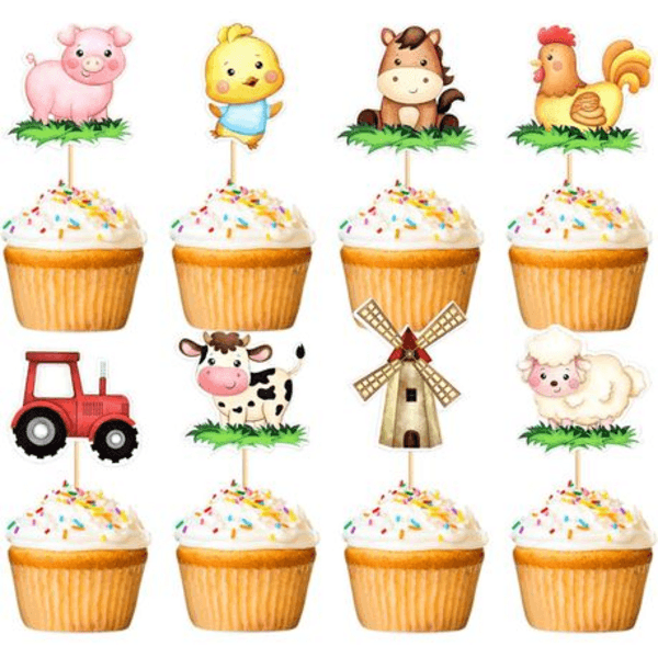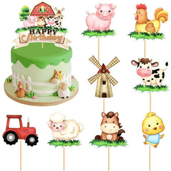 Bring your farm-themed celebration to life with our adorable Farm Themed Cake and Cupcake Toppers! Featuring cute animals, a barn, tractor, and more, this charming 9-piece set is perfect for decorating cakes and cupcakes for birthdays and farmyard parties.
