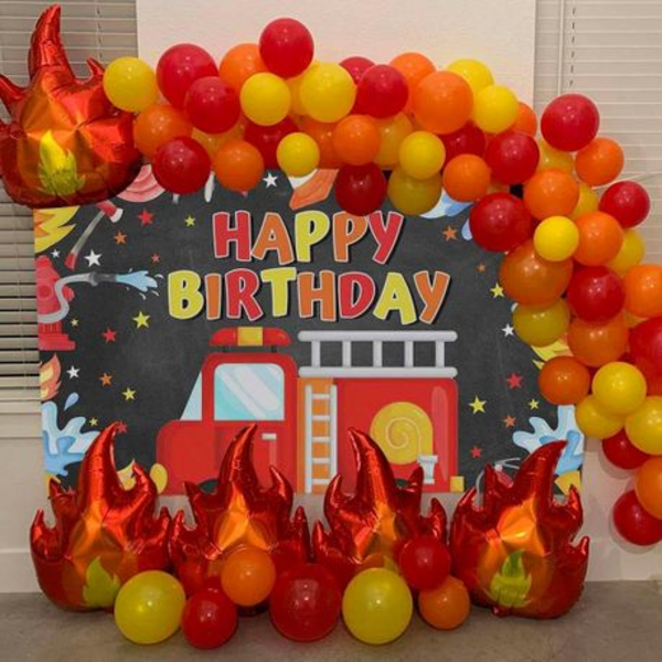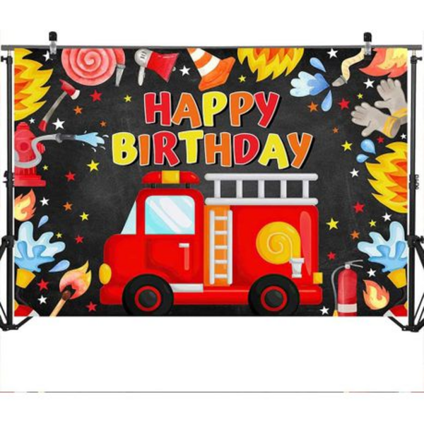 Ignite the party atmosphere with this vibrant Firefighter Themed Backdrop! Featuring bold colors, flames, and a classic red fire truck, it's the perfect scene-setter for any firefighter-themed birthday celebration.