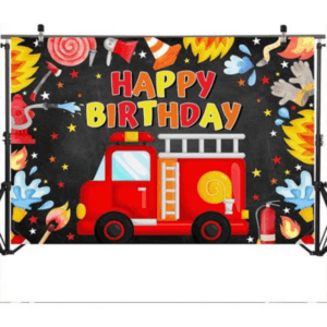 Ignite the party atmosphere with this vibrant Firefighter Themed Backdrop! Featuring bold colors, flames, and a classic red fire truck, it’s the perfect scene-setter for any firefighter-themed birthday celebration.