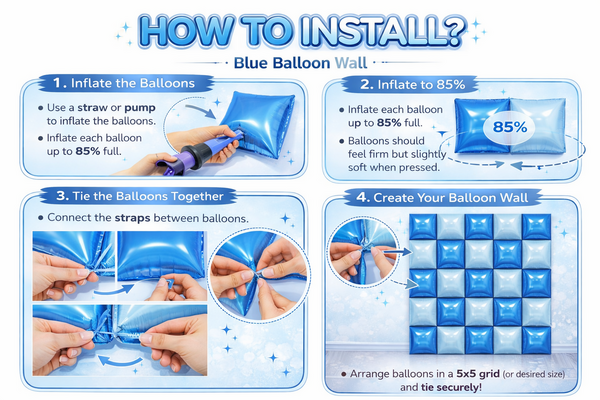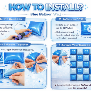 Create a bold, modern statement with this Foil Balloon Wall Backdrop – Light Blue and Dark Blue. Featuring 25 square foil balloons arranged to form a striking 3D wall effect, this backdrop adds instant shine and dimension to birthdays, weddings, corporate events, and glamorous celebrations.