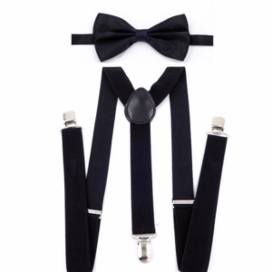 Black elastic suspenders with silver clips