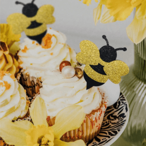 Sweeten up your dessert table with our Glitter Bee Cupcake Toppers! Featuring adorable yellow and black bees made from non-shedding glitter cardstock, these toppers add the perfect buzz to your cupcakes, muffins, or bite-sized treats.