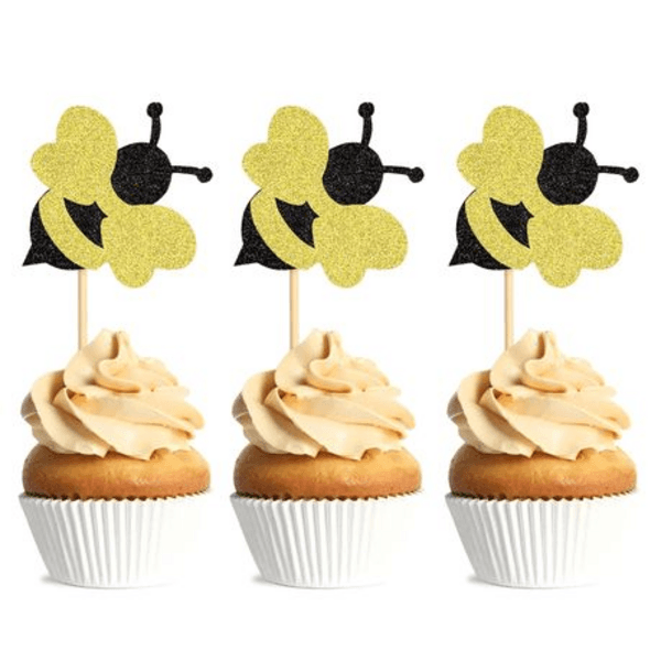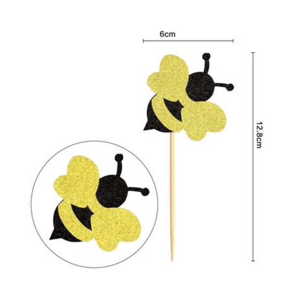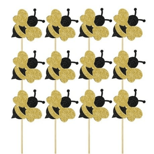 Includes 12 glitter bee toppers