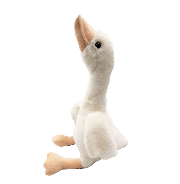 Sweet, soft and beautifully neutral, this Goose Plush Toy (White) is the perfect addition to a nursery, baby shower setup, or themed birthday celebration. With its fluffy white body and soft peach beak and feet, it blends effortlessly into pastel, neutral or “One Silly Goose” party décor.