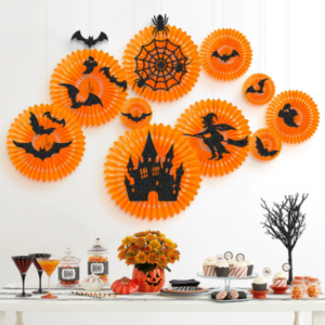Featuring vibrant orange fans in assorted sizes and glittery black cutouts of bats, witches, ghosts, spiders, and haunted houses, this set is perfect for Halloween parties, trick-or-treat events, and spooky-themed celebrations. Made from durable paper and reusable with care, these fans create a chilling backdrop guests won’t forget.