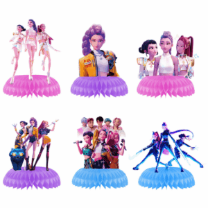 Level up your party table with our KPop Demon Hunters Honeycomb Table Décor. This vibrant set features six bold designs showcasing your favourite KPop-inspired characters on colourful honeycomb bases. Perfect for centrepieces, dessert tables, or themed setups, they instantly bring action and attitude to your event.