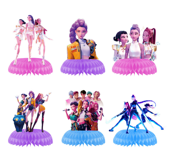• Includes 6 stand-up honeycomb decorations with different KPop Demon Hunters designs