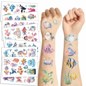Make a splash at your next party with these adorable Ocean-Themed Kids Temporary Tattoos! Featuring sea creatures like turtles, dolphins, jellyfish, and colourful coral, they’re perfect for birthday party favours, school events, or everyday fun. Easy to apply and gentle on the skin, they bring under-the-sea magic to any occasion.