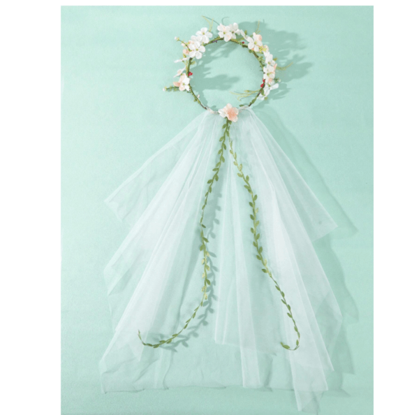 1 x Flower-adorned bridal veil with attached floral crown