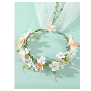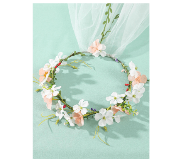 Faux floral crown with blush pink and white flowers