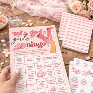 Add laughter and friendly competition to the celebration with the Let’s Go Girls Bachelorette Bingo Game (24 Cards). Designed with a fun cowgirl-inspired theme, this party game features playful prompts that encourage guests to interact, share stories, and enjoy the festivities together.