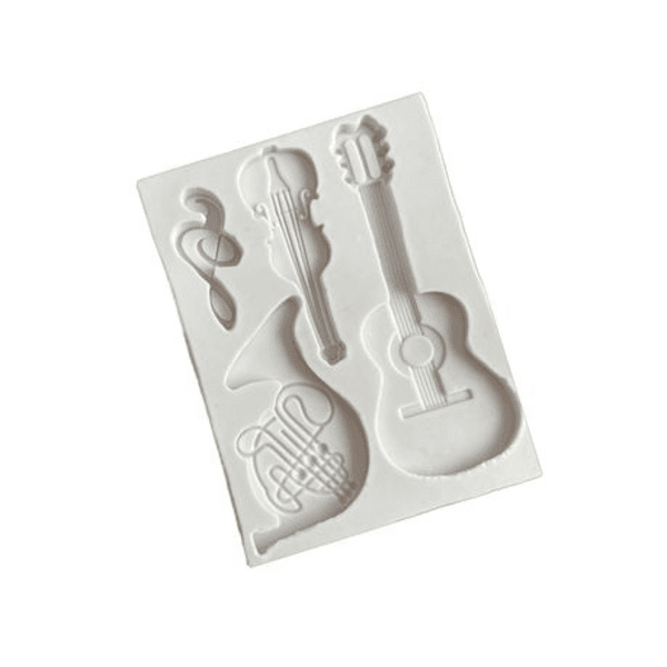 Bring a note of creativity to your bakes with our Musical Instruments Silicone Fondant Mold! Featuring detailed shapes like a guitar, violin, French horn, and treble clef, this mold is perfect for music-themed cakes, cupcakes, and crafts.