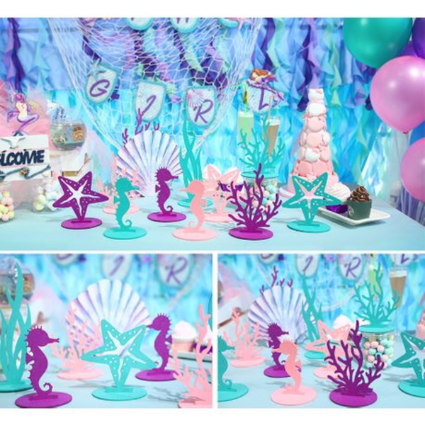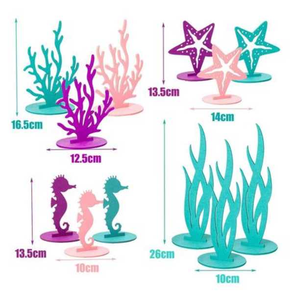 Bring your under-the-sea party to life with this colourful Ocean Themed Table Décor set! Featuring starfish, coral, seahorses, and seaweed in vibrant shades, these freestanding pieces make it easy to create a magical marine atmosphere on any party table. Perfect for birthdays, baby showers, or mermaid-themed events.