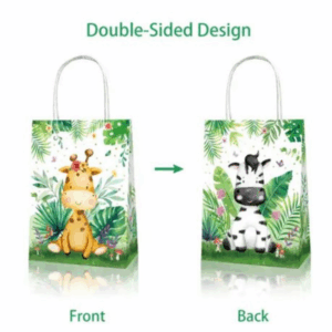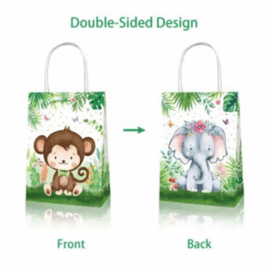 Turn your celebration into a jungle adventure with our Party Favor Bags with Handles – Baby Safari Animals Theme! Featuring adorable baby animals like giraffes, elephants, and monkeys in a lush safari setting, these bags are perfect for birthdays, baby showers, or themed parties. Made from high-quality paper, each bag is sturdy and spacious enough for treats, toys, or goodies. Let your little guests leave with a smile and a safari souvenir!