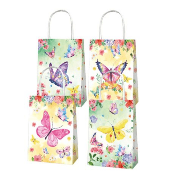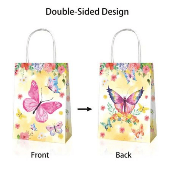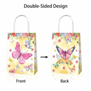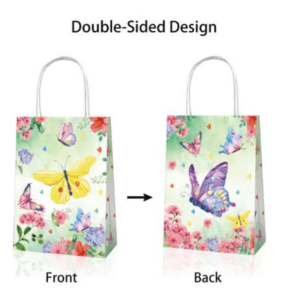 Bring a touch of elegance to your celebration with our Party Favor Bags with Handles – Butterfly Theme – 12 Bags. Featuring beautiful butterflies and floral accents, these bags are perfect for birthdays, garden parties, or springtime events.