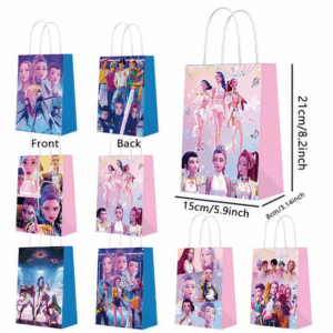 Send your guests home in style with our KPop Demon Hunters Party Favor Bags! Featuring bold prints of your favourite characters in 6 unique designs, these handled paper bags are perfect for filling with sweets, toys, and party goodies. A must-have for any KPop-themed birthday or fan celebration.