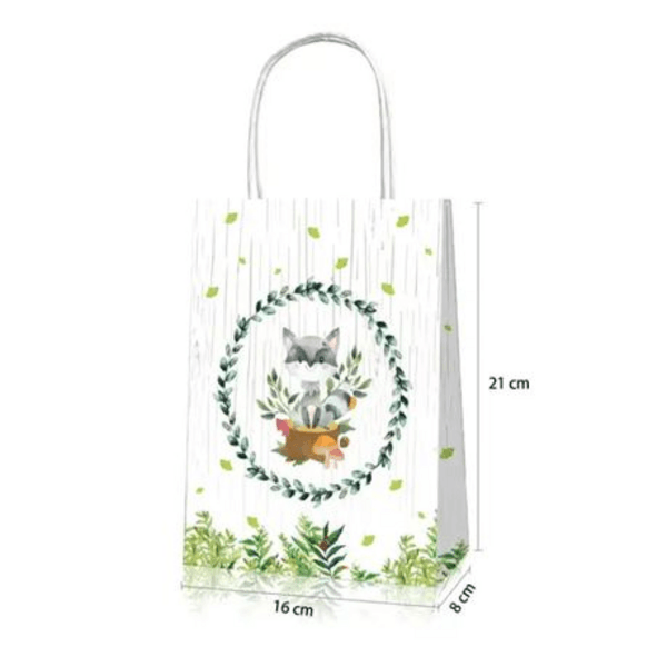 Delight your guests with our Woodland Greenery Animal Theme Party Favor Bags. Featuring soft forest illustrations of deer, owls, foxes, and bears surrounded by greenery, these charming bags are ideal for nature-inspired, woodland, or rustic-themed parties. With sturdy handles and high-quality paper, they’re perfect for filling with treats, toys, or thank-you goodies.