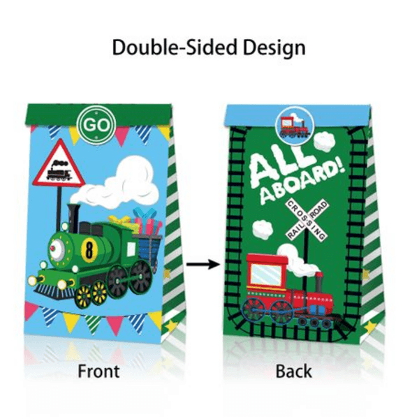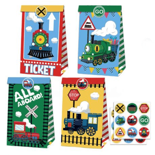All aboard for party fun with our Party Favor Bags with Stickers – All Aboard Train Theme! Featuring vibrant locomotive designs and colorful stickers to match, these paper favor bags are perfect for train-themed birthdays, school events, or toddler celebrations. They're great for holding sweets, small toys, or thank-you treats for your little guests.