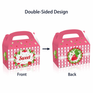 Add a splash of sweetness to your party with our Strawberry Theme Party Favor Boxes! Featuring adorable gingham backgrounds, strawberries, and floral details, these boxes are perfect for birthday celebrations, garden parties, or themed events. Each box is easy to assemble and has a handle for convenient carrying. Ideal for packing small treats, toys, or party favors.