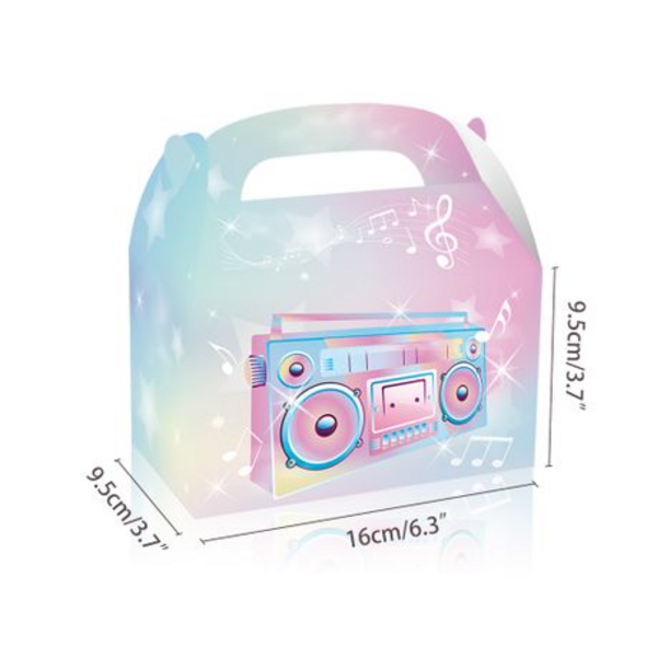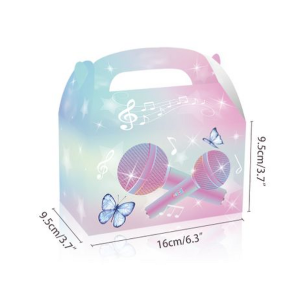 Add a touch of elegance to your celebration with our Taylor Swift-Themed Party Favor Boxes. This set of 12 sturdy boxes, measuring 9.5 x 16 x 9.5 cm, is perfect for holding treats, gifts, or party favors. Designed with vibrant Taylor Swift-inspired themes, these boxes are a stylish addition to any fan's birthday, themed party, or special event. Easy to assemble and eye-catching, they're sure to impress your guests.