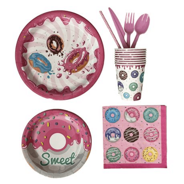 Sweeten up your celebration with our Donut & Candy Theme Tableware Set! Featuring colourful donuts, sprinkles, and candy designs in fun pink and pastel tones, this delightful set is perfect for dessert parties, birthdays, or any sugar-filled celebration.