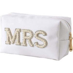 Stay stylish and organized with our Pearl Detail Mrs Make-Up Bag, designed for the bride-to-be or newlywed. Featuring a chic "Mrs" design and delicate pearl detailing, this elegant bag is the perfect accessory for storing makeup, brushes, and skincare essentials. With its compact size of 10 x 8 x 17cm, it's ideal for travel or daily use, while the durable PU leather material ensures your beauty items are safely stored. This beautiful and practical make-up bag is a must-have for any bride or as a thoughtful gift.