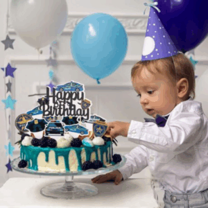 - Main Cake Topper: "Happy Birthday" with police icons