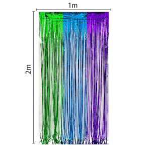 Create a dazzling photo booth or party entrance with our Rainbow Foil Curtain Backdrop Set. With shimmering colours that include red, gold, green, blue, and purple, this set is perfect for birthdays and events. The Rainbow Foil Curtain Backdrop Set adds vibrant flair to walls or doorways.