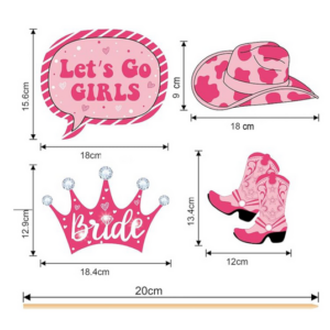 Ideal for bachelorette parties, bridal showers, and cowgirl-themed celebrations, these props create a fun photo booth experience for the bride and her squad.