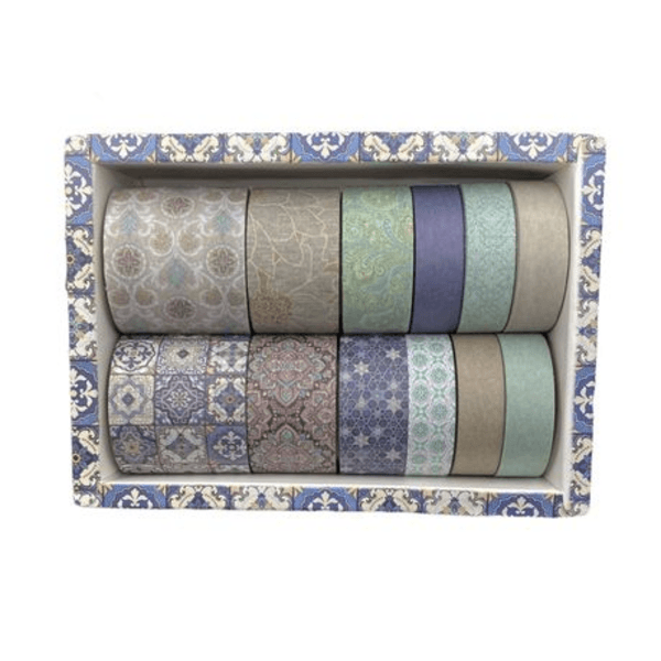 Add exotic flair to your crafts with our Washi Tape Box Set of 12 (Moroccan Theme)! Inspired by intricate tilework and earthy tones, this collection features detailed patterns and soft colours perfect for giving your journals, planners, and gift wrap a touch of cultural elegance. Each roll is easy to use and made from premium washi paper that’s both durable and repositionable.