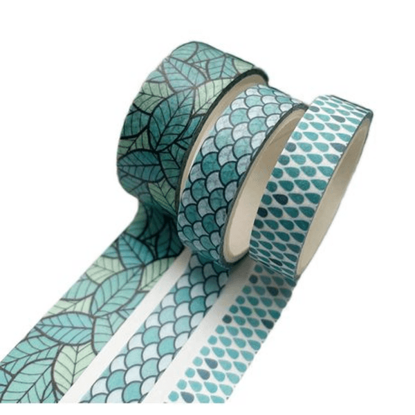 Infuse your crafts with cool, refreshing tones using our Washi Tape Box Set of 3 (Scallop & Leaves Turquoise). This elegant set includes three unique designs—featuring intricate leaves, scalloped scales, and playful dot patterns—all in calming shades of turquoise and aqua. Ideal for enhancing journals, wrapping gifts, or decorating planners, these tapes offer a stylish and cohesive look for any creative project.
