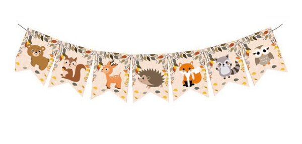 Complete your forest celebration with our adorable Woodland Banner! Featuring a lineup of cute woodland animals—like bears, foxes, raccoons, and hedgehogs—this charming banner is perfect for nature-themed birthdays, baby showers, or outdoor parties. With leafy accents and a soft, earthy colour palette, it adds a warm, rustic touch to your party decor.